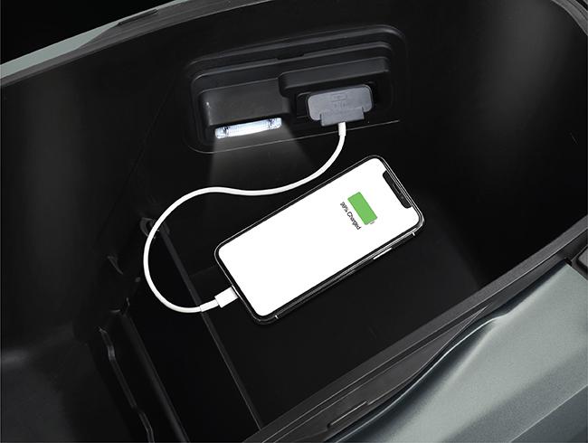 AIR BLADE mới được trang bị cổng sạc USB (Loại A) kèm nắp chống nước trong hộc đựng đồ dưới yên xe (trên cả hai phiên bản 160cc & 125cc). Cổng sạc với dòng điện đầu ra 2,1A giúp việc sạc điện thoại trở nên thuận tiện, nhanh chóng, nâng tầm trải nghiệm cho khách hàng trên mọi nẻo đường.
