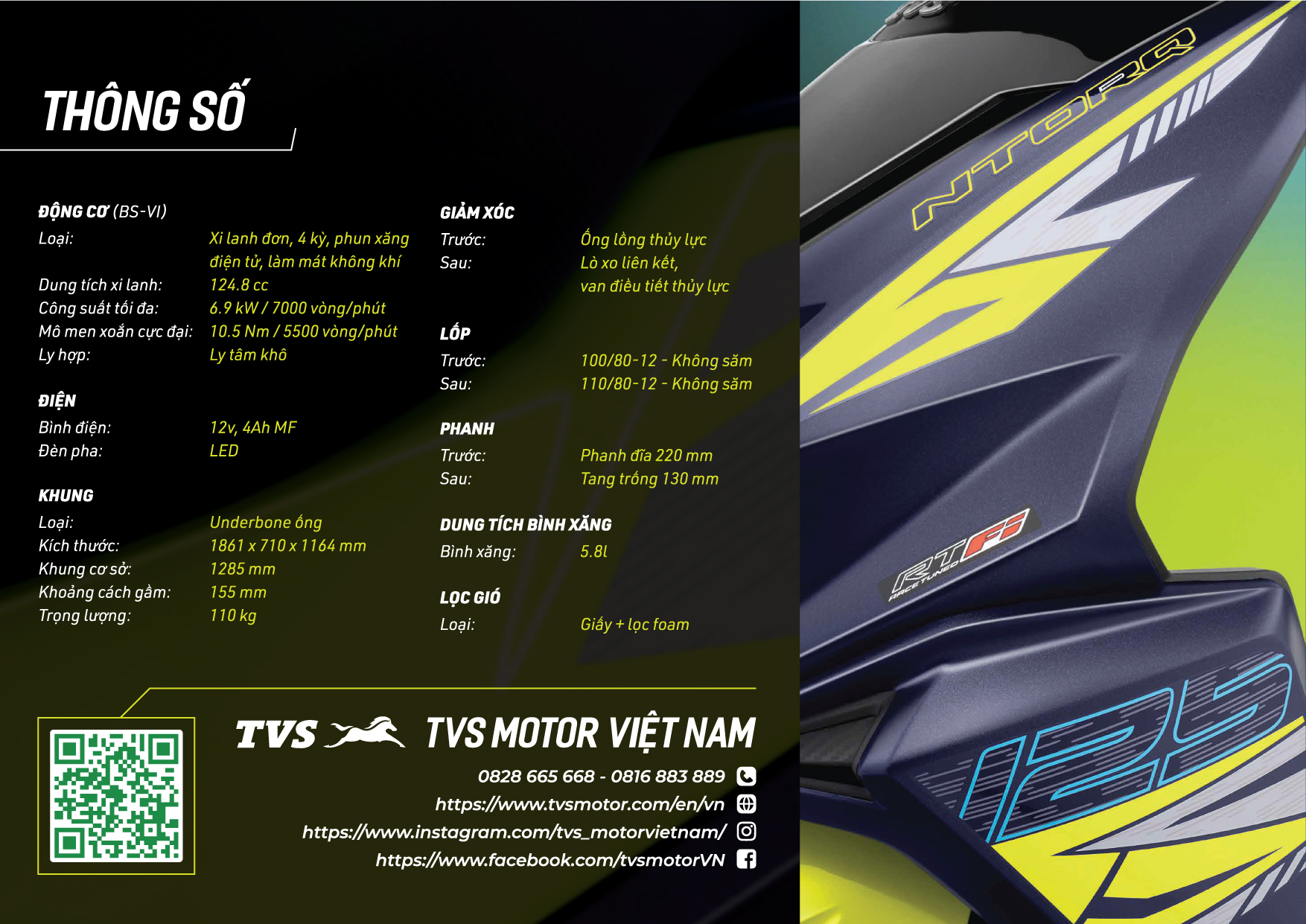 Động cơ CVTI 125cc 3 Van - TVS Ntorq 125 XP được trang bị khối động cơ mạnh mẽ, đạt công suất tối đa 7,5kW
