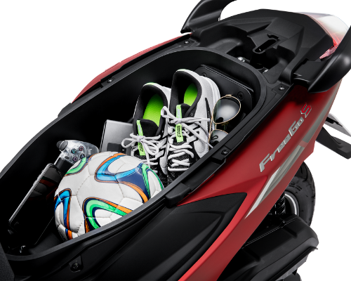 Yên xe dài 720mm và sàn để chân rộng rãi cho cả người lái và người ngồi sau đem lại cảm giác lái tự do và thoải mái. Cốp để đồ rộng với dung tích 25 lít có thể chứa 2 nón bảo hiểm nữa đầu và nhiều vật dụng khác.