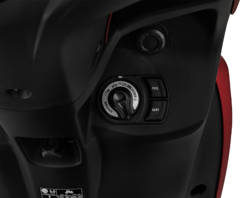 Hệ thống chìa khóa thông minh chỉ kích hoạt khi người giữ khóa đang ở trong phạm vi cho phép, với núm xoay có thể thực hiện nhiều chức năng: bật/tắt khóa điện, khởi dộng/ ngắt khởi động, mở khóa cổ xe, mở yên xe (kết hợp với nút bấm "seat').
