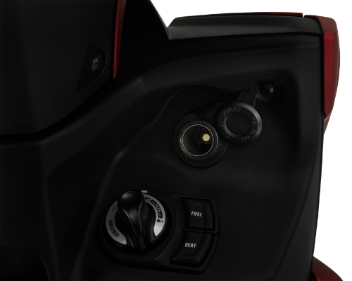 Cổng sạc điện thoại 12V và nắp bình xăng nằm ở dưới phía trước đầu xe, ngay phía trên chỗ để chân giúp người lái thuận tiện sử dụng mà không rời khỏi yên xe. Nắp bình xăng mở dễ dàng với một nút nhấn, an toàn cho người sử dụng.