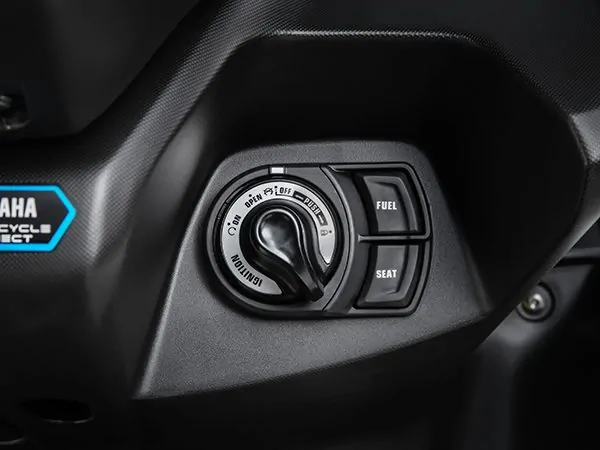 Hệ thống khóa thông minh với núm xoay có thể thực hiện nhiều chắc năng như, khởi đông/ngắt động cơ, mở/khóa cổ xe, mở yên xe, mở nắp bình xăng, định vị tìm xe.