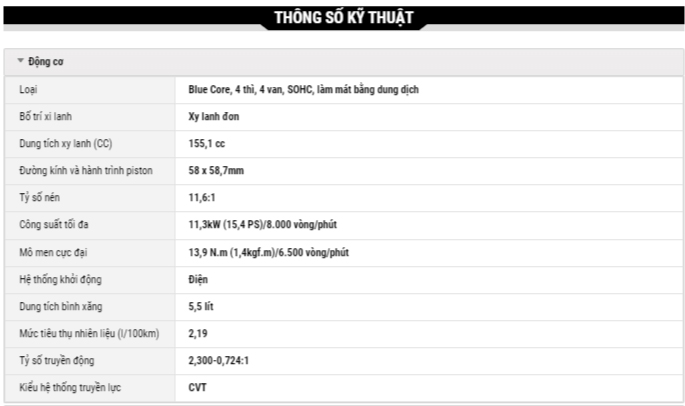 Cốp xe dưới yên có sức chứa lên đến 25 lít.