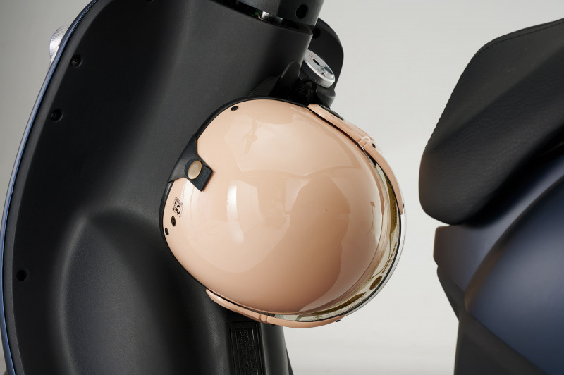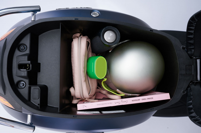 Cốp dưới yên xe lớn chứa được 2 mũ bảo hiểm nửa đầu và những thứ linh tinh khác.