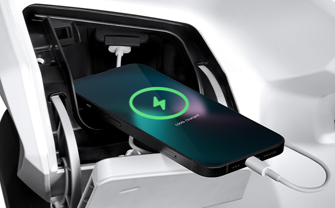 Bộ sạc USB Type A ở phía trước giúp mọi liên hệ không bị gián đoạn, đáp ứng mọi hành trình.