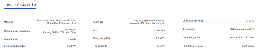 Quãng đường di chuyển 117 km/1 lần sạc.