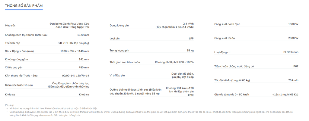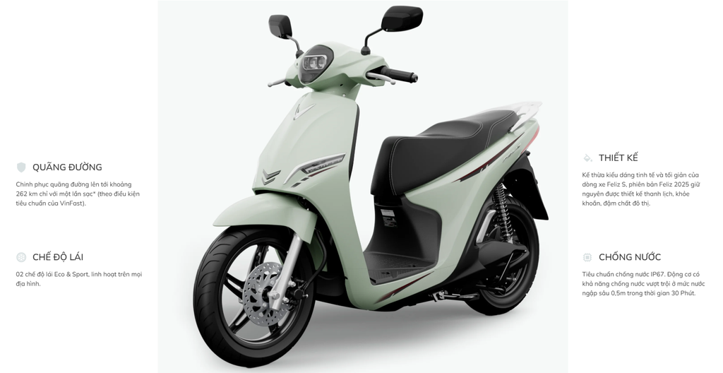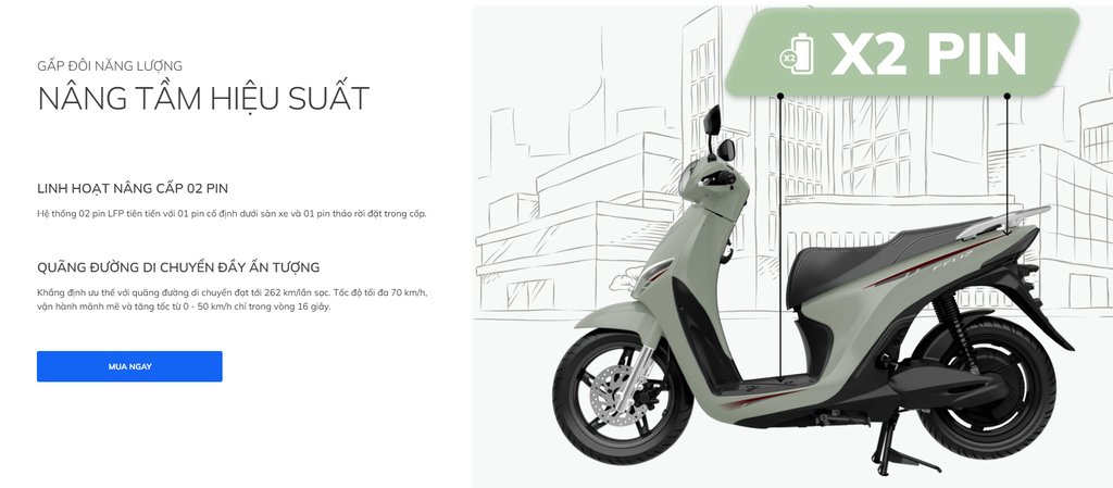 Quãng đường di chuyển ~262 km/1 lần sạc.