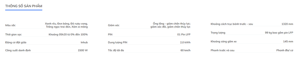 Quãng đường di chuyển 114 km/1 lần sạc.