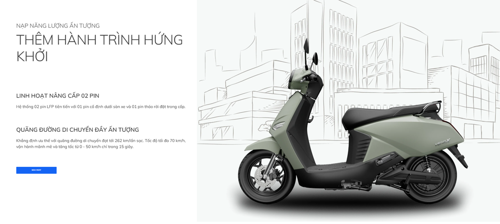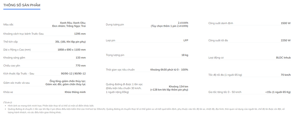 Quãng đường di chuyển ~262 km/1 lần sạc.
