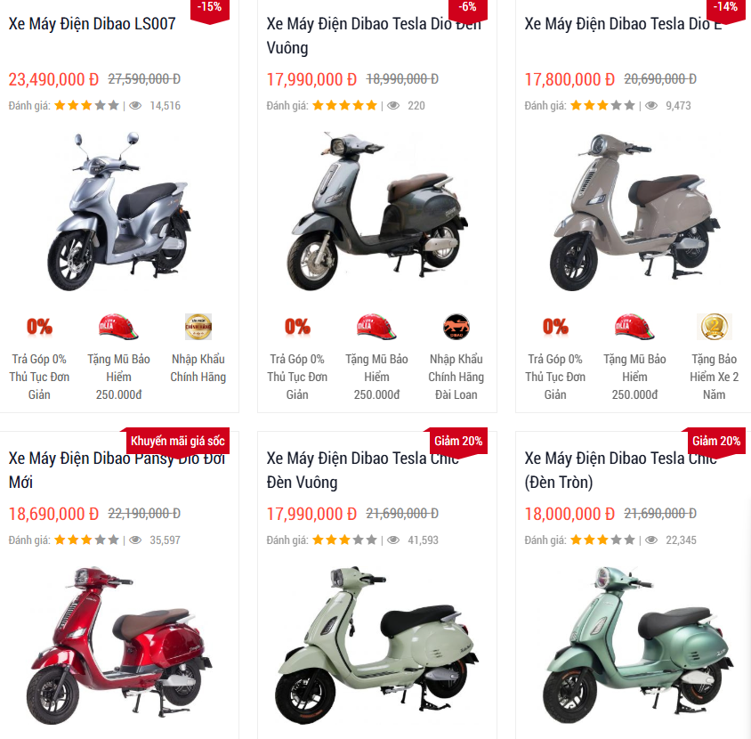 Thị trường cũng có nhiều mẫu xe dưới 20 triệu đồng đến từ các thương hiệu ít phổ biến hơn như Dibao, Tailg, Osakar. Các mẫu xe này thường được bán qua đại lý tư nhân và có thiết kế mô phỏng xe ga hoặc xe số truyền thống.