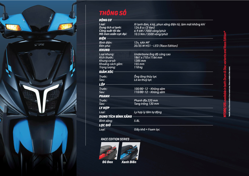TVS 125 RE được trang bị khối động cơ mạnh mê, đạt công suất tôi đa 6,9 kW