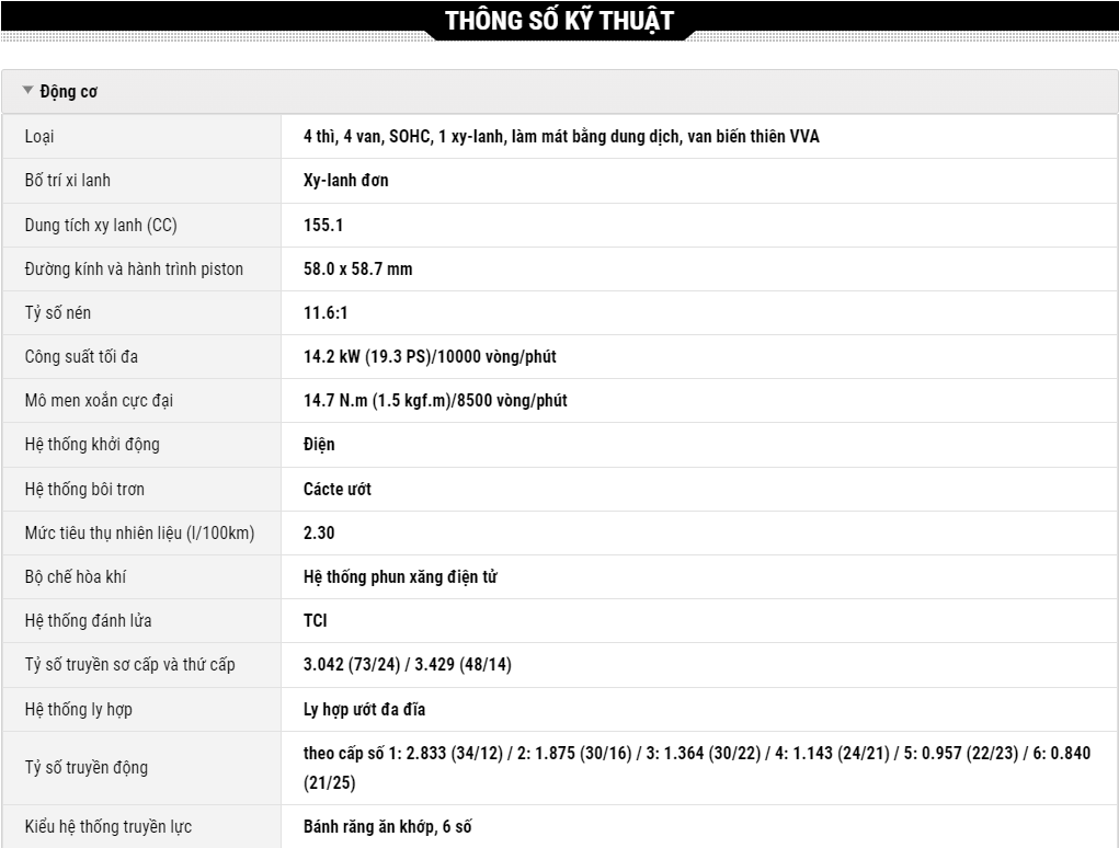 VẺ NGOÀI MỚI, ĐẠM CHẤT R-DNA - ĐỘNG CƠ 155CC VVA